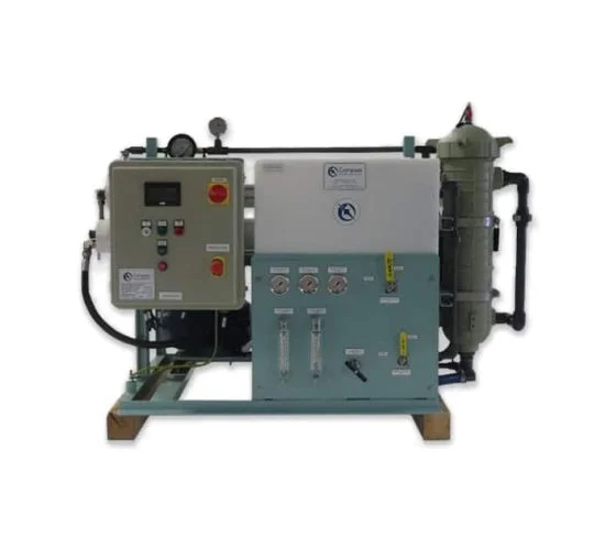 Standard systems range from 5 m3/day (1,390 GPD) to 30 m3/day (7,925 GPD) and handle a wide range of salinity (36,000 TDS to 45,000 TDS), with temperature ranges (0oC / 32oF to 35oC / 95oF). The closed-loop control system is built with NEMA 4X integrity. The Series II system has a compact footprint and low overall height making it an excellent choice for locations where space is valuable